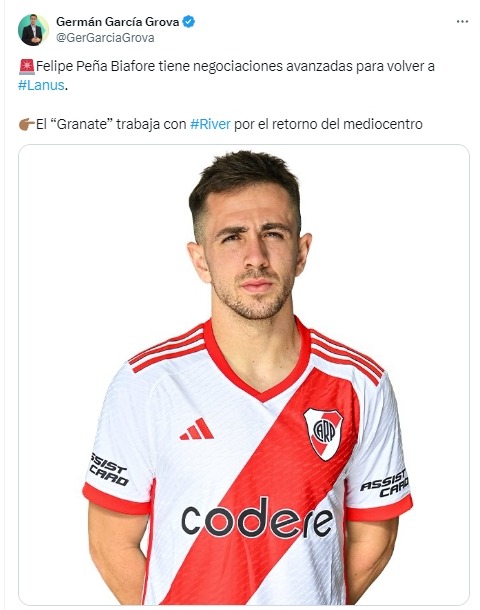 Felipe Peña Biafore tiene negociaciones avanzadas para volver a Lanús“, manifestó Germán García Grova. Una operación de las más raras. Porque el volante había sido repescado hace dos meses después de un buen rendimiento con la camiseta del Granate. Y que viene de ser titular frente a Gimnasia por la Liga Profesional.