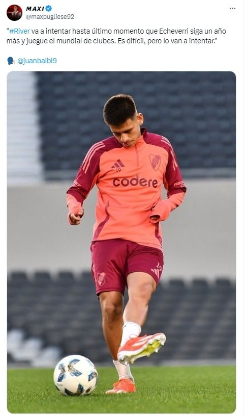 Por lo tanto, Marcelo Gallardo está comenzando a diseñar un plan que podrÃa llegar a entregar buenos resultados. “River va a intentar hasta último momento que Claudio Echeverri siga un año más y juegue el Mundial de Clubes. Es difÃcil, pero lo van a intentar“, manifestó Juan Patricio Balbi sobre la estrategia que comenzará a aplicarse.