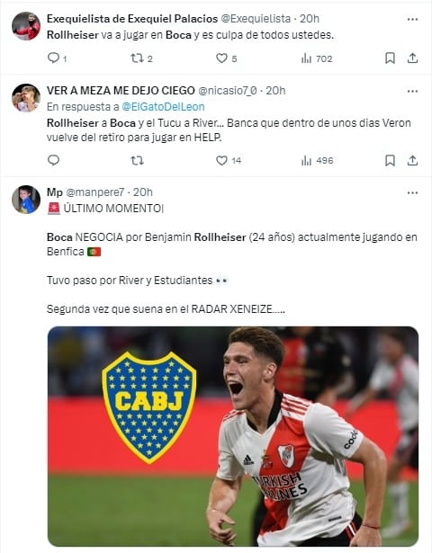 Acá es donde puede darse una noticia que va a generar ruido. “Boca negocia con Benjamín Rollheiser actualmente jugando en Benfica. Segunda vez que suena en el radar Xeneize“, expresan desde cuentas partidarias que se encargar de cubrir la información. Es probable que la incorporación se de por medio de un préstamo.