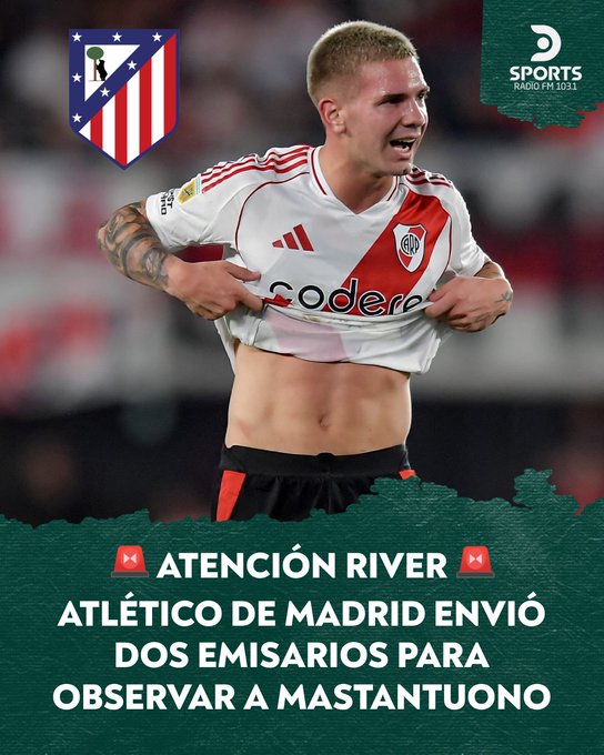 “El Atlético de Madrid mandó dos emisarios que fueron a verlo a Franco Mastantuono al estadio Monumental“, expresaron desde DSports Radio. No es la primera vez que el nombre del juvenil aparece vinculado al conjunto de Cholo Simeone. Esto es producto de que le ven mucho potencial y lo quiere pulir dentro del plantel.