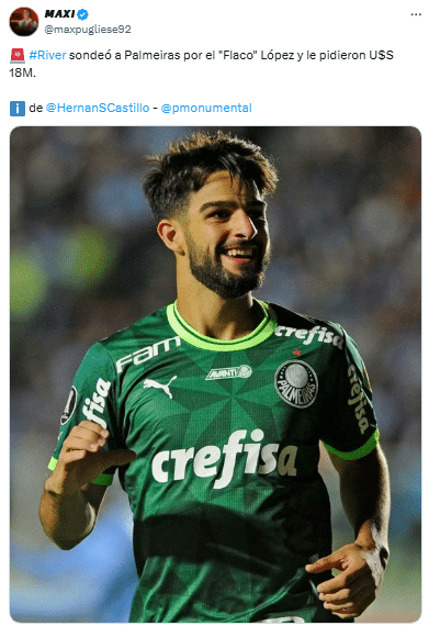 “River sondeó a Palmeiras por el Flaco López y le pidieron 18 millones de dólares”, confirmó Hernán Castillo a través de su canal de YouTube, descartando la transferencia para el corto plazo. Por este motivo, tanto Marcelo Gallardo como Jorge Brito quedarán obligados a cambiar de enfoque en el mercado para reforzar la parte alta del equipo.