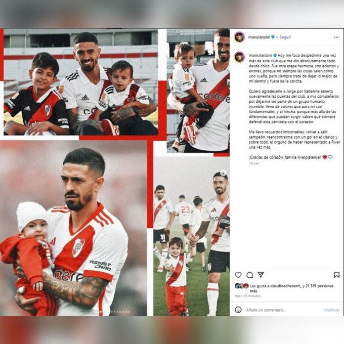 “Me llevo recuerdos imborrables: volver a salir campeón, reencontrarme con un gol en el clásico y, sobre todo, el orgullo de haber representado a River una vez más”, agregó. Nunca mencionó a Marcelo Gallardo y mucho menos a Martín Demichelis. De hecho, sus fotos tienen a sus compañeros de plantel y sus hijos.