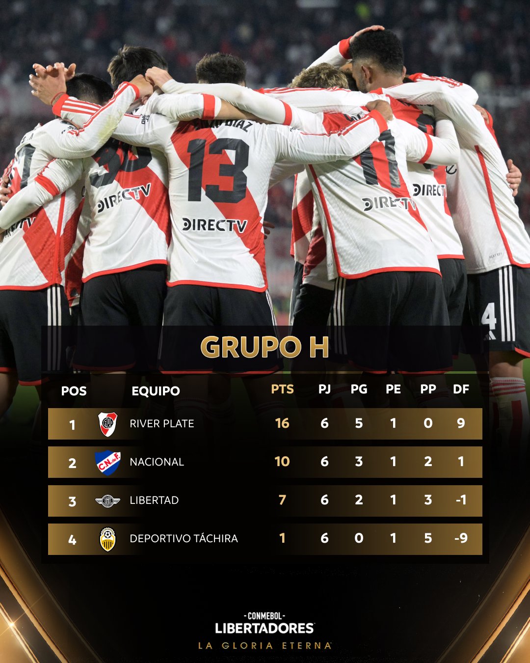 El desempeño de River señala que culminó primero con 16 unidades. A razón de que ganó cinco encuentros y tan solo empató en una jornada. Este partido fue uno que comenzó ganando por 2-0 frente a Nacional de Uruguay, pero la falta de carácter del equipo provocó que el marcador finalice 2-2 y por poco no se transformó en una derrota.