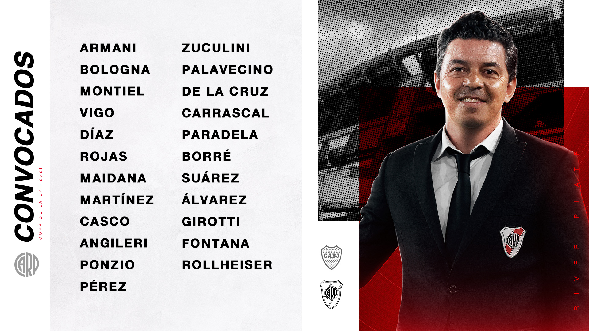 En la línea del arco fueron convocados Franco Armani y Enrique Bologna. Luego, en lo que respecta a la zaga de la defensa se pueden apreciar las figuras de Alex Vigo, Paulo Díaz, Robert Rojas, Jonatan Maidana, David Martínez, Milton Casco, Fabrizio Angileri y Gonzalo Montiel. Este último en el entrenamiento de la mañana respondió de gran manera. Por lo tanto, se lo volverá a exigir en la práctica del sábado.