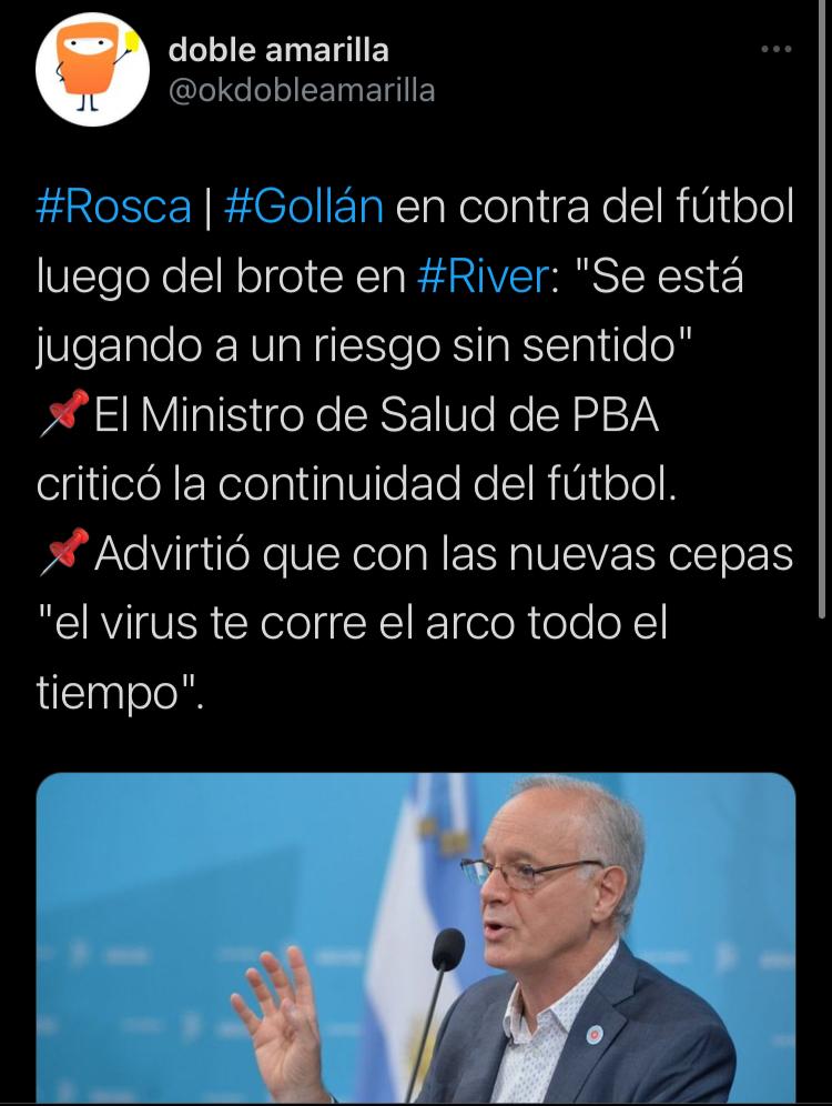 A su vez, habló sobre los testeos y la importancia de que los mismos se cumplan bajo un criterio epidemiológico, ya que en River no tomaron en cuenta el factor de los contactos estrechos y deberían haber aislado a todos aquellos que tuvieron cercanía con los infectados. Esta semana habrá reuniones decisivas entre Ciudad y Provincia para ver cómo continúa el aislamiento.
