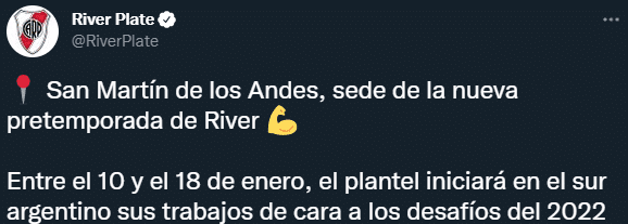 Este mismo 3 de enero, el propio club emitió un comunicado en el que, además de afirmar que los jugadores no irán a territorio estadounidense, reveló donde será definitivamente. “Debido a cuestiones de salud pública, se decidió suspender el viaje a Estados Unidos y, finalmente, la pretemporada se llevará a cabo en San Martín de los Andes”, manifestó River.