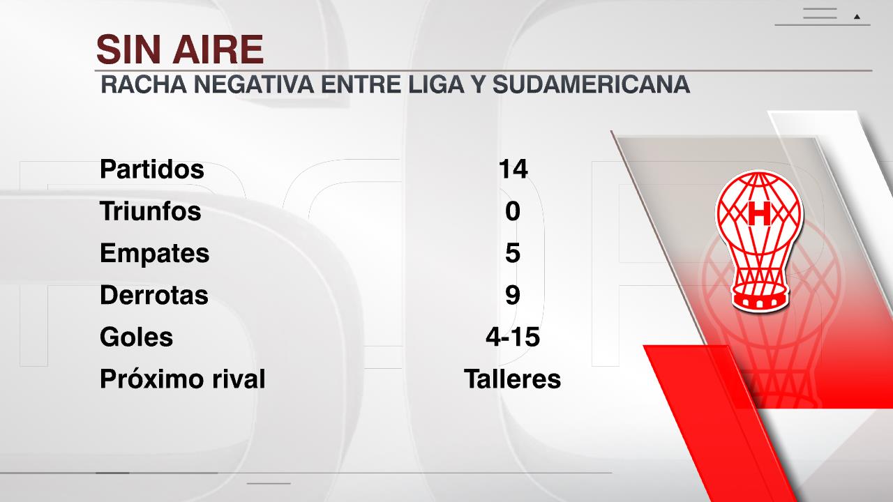 Entre Liga Profesional y Copa Sudamericana, Huracán arrastra una racha de 14 partidos sin conocer la victoria. La cual está compuesta por cinco empates y nueve derrotas. Además, se puede apreciar que convirtió cuatro goles y le marcaron en quince oportunidades. Los hinchas piden a gritos un cambio para evitar la pérdida de la categoría en diciembre.