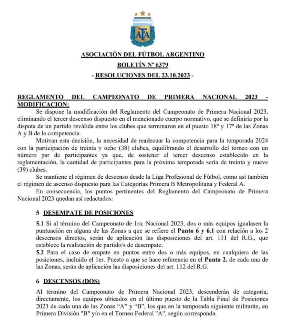En la noche del lunes, la AFA le comunicó a los equipos que forman parte de la Primera Nacional una serie de modificaciones que afectan de gran manera al armado de la temporada 2024. El más importante es la anulación de un descenso. Y estos cambios podrÃan tener efectos en la estructura de la Liga Profesional. ¿Se viene un torneo de 30 clubes?