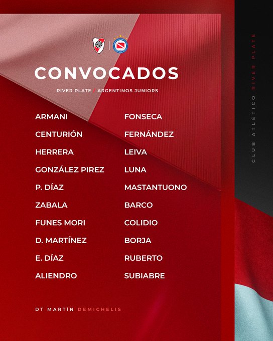 Por lo tanto, la gran cantidad de bajas registradas permite observar que MartÃn Demichelis tuvo que recurrir a la división de Reserva para asà poder completar el banco de suplentes. En consecuencia, esto provocó que Daniel Zabala, TobÃas Leiva, Jonás Luna, Franco Mastantuono, AgustÃn Ruberto y Ian Subiabre tengan chances de sumar minutos ante Argentinos.