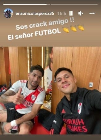 Luego del encuentro entre River y Patronato, Enzo Pérez sorprendió a todos a través de sus redes sociales. Normalmente, lo hace con algún gesto o quizás reconocimiento por parte del millonario. Pero esta vez fue él quien reconoció a un compañero suyo. Esta historia donde mencionó a su amigo y lo elogió: “Sos crack“, aunque no todo quedó allÃ.