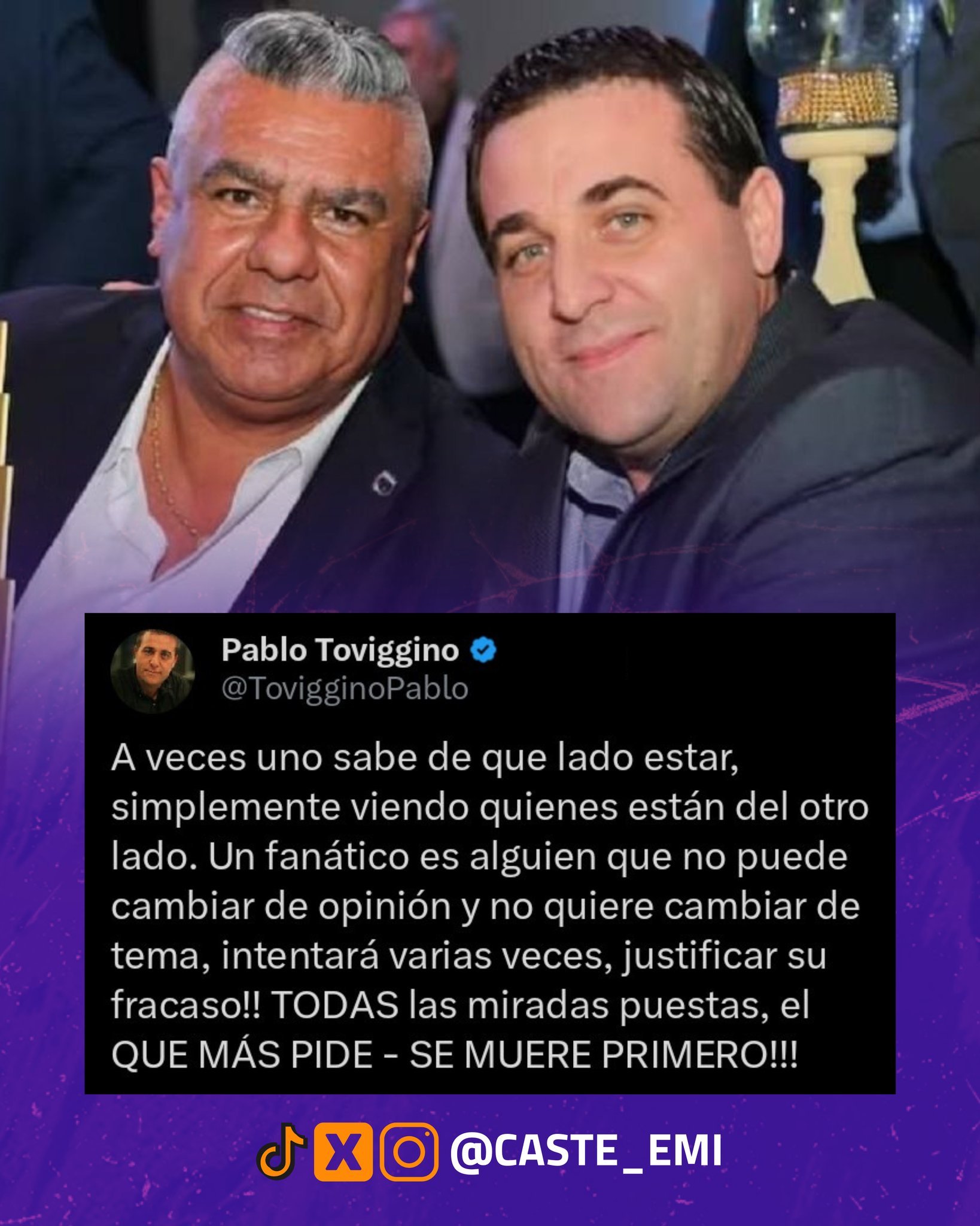 En la tarde de este sábado, Pablo Toviggino, que se desempeña como Secretario Ejecutivo de la AFA, tomó su teléfono, abrió la aplicación de X y escribió un mensaje bastante curioso. “A veces uno sabe de qué lado estar, simplemente viendo quienes están del otro lado. Un fanático es alguien que no puede cambiar de opinión y no quiere cambiar de tema, intentará varias veces justificar su fracaso”, expresó.