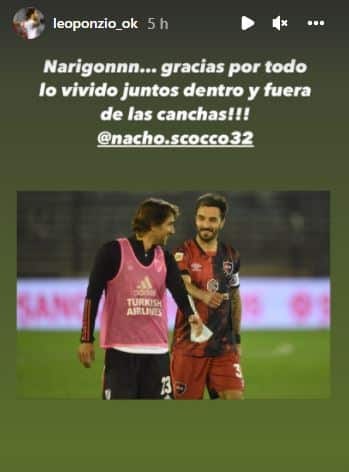 Leo Ponzio lo felicitó mediante su cuenta personal en Instagram con un mensaje y una foto de los dos. Agradeciendo por todo lo vivido tanto dentro como fuera de las canchas. Su relación no pasaba solo por ser compañeros de equipo y compartir plantel, concentraciones, etc. Sino que iba más allá y hasta compartÃan vacaciones, juntadas extra futbolÃsticas, con sus respectivas familias, entre otras.